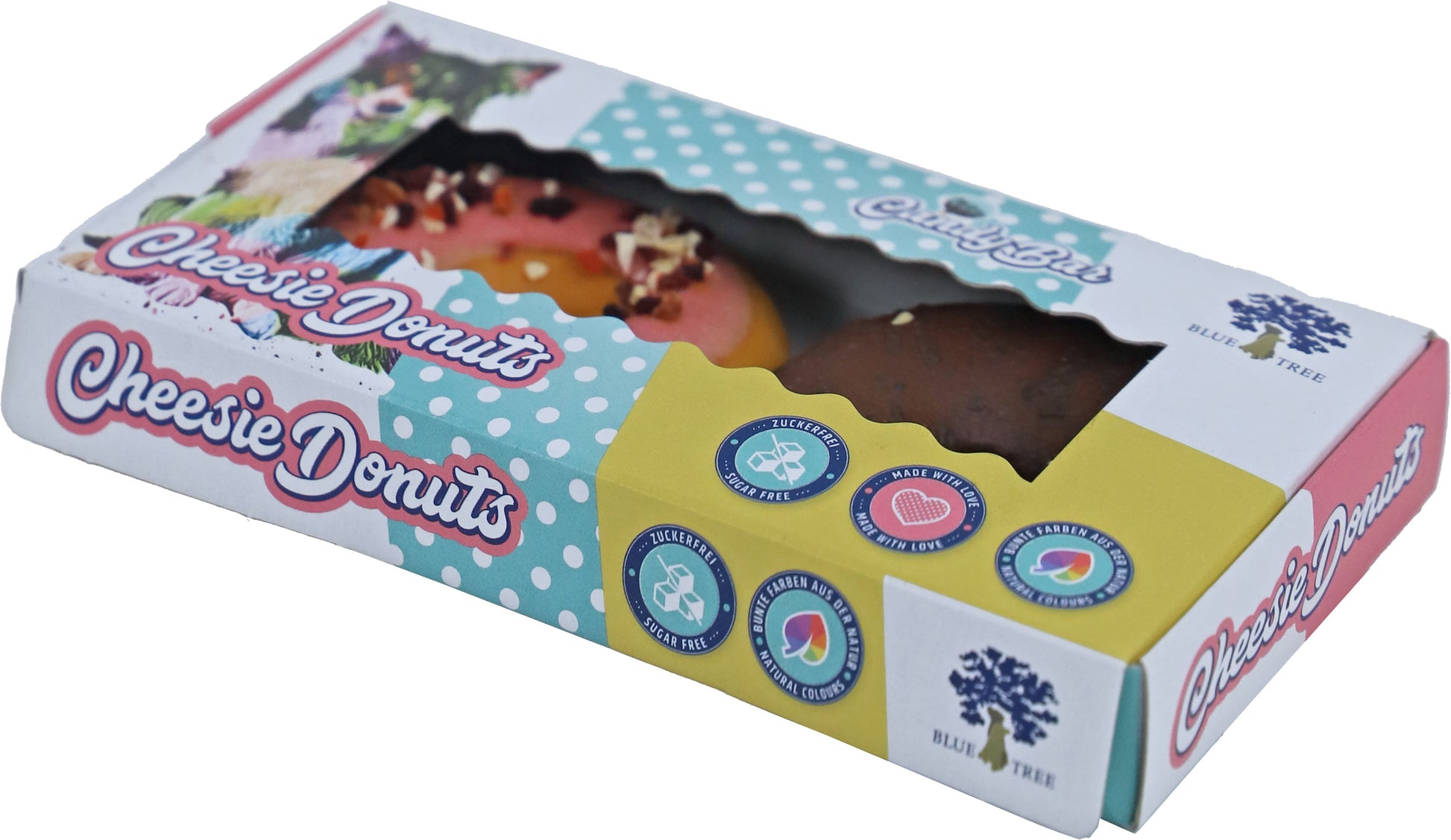 Zonder chocolade, suiker of synthetische toevoegingen zijn ze een gezonde keuze. De natuurlijke kleuren van de Cheesie Donuts komen uitsluitend van rode biet, paprika en kurkuma.
