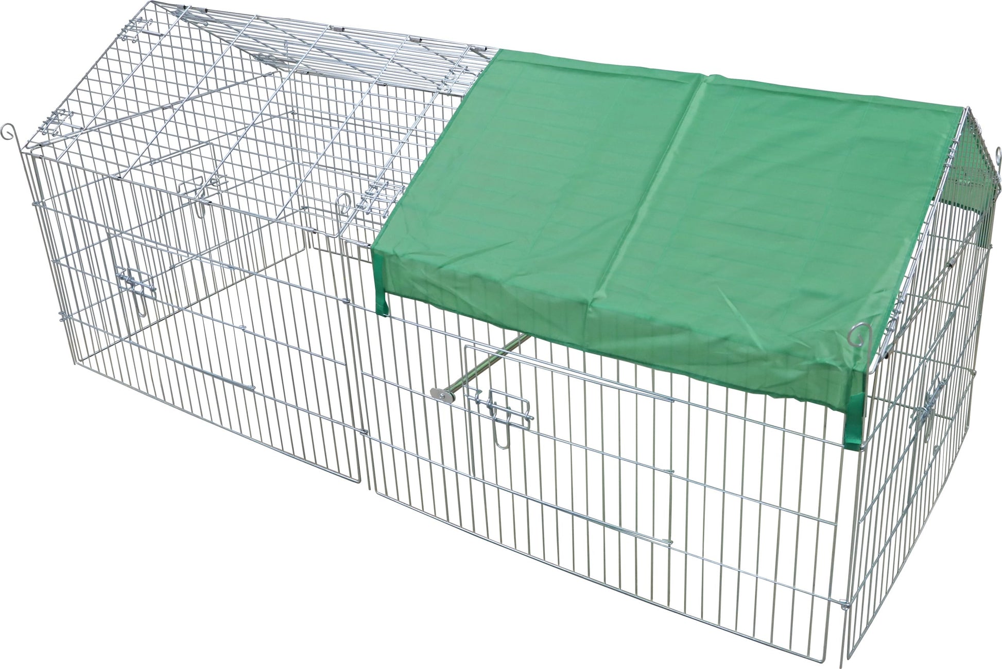De Boon Draadren met Puntdak en Zonnedoek is de ideale oplossing voor je kip, konijn of cavia om veilig van de buitenlucht te genieten. Met royale afmetingen van 180 bij 75 cm biedt deze verzinkte draadren volop ruimte om te bewegen. Het puntdak geeft een huiselijke uitstraling en kan gemakkelijk op zowel gras als een harde ondergrond worden geplaatst. De diverse deuren maken toegang eenvoudig, terwijl het zonnedoek ervoor zorgt dat je huisdieren op zonnige dagen kunnen genieten van een aangename schaduwplek. Laat je dieren vrij en veilig spelen met deze ruime en functionele draadren!