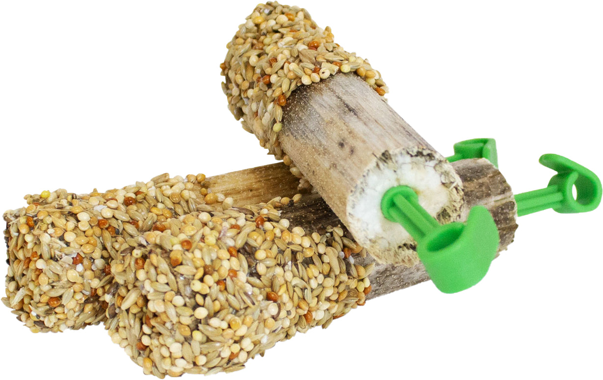 JR Farm zonnebloemstelen met gierst, 20 gram. Natuurlijk, caloriearm en gezond snackplezier voor alle huisdieren! De natuurlijke zonnebloemstengels worden voorzichtig gedroogd, ingekort tot hanteerbare stukjes en gevuld met een aromatisch mengsel van verschillende zaden, soorten gierst en oesterschelpen. Gegarandeerd knabbelplezier, gecombineerd met waardevolle vitamines, mineralen en sporenelementen. De onbehandelde gierst zonnebloemstelen kunnen overal in de kooi/volière geplaatst worden en zijn volledig consumeerbaar (behalve de hangers). Aanvullend diervoeder voor alle gezelschapsvogels, inhoud 20 gram.