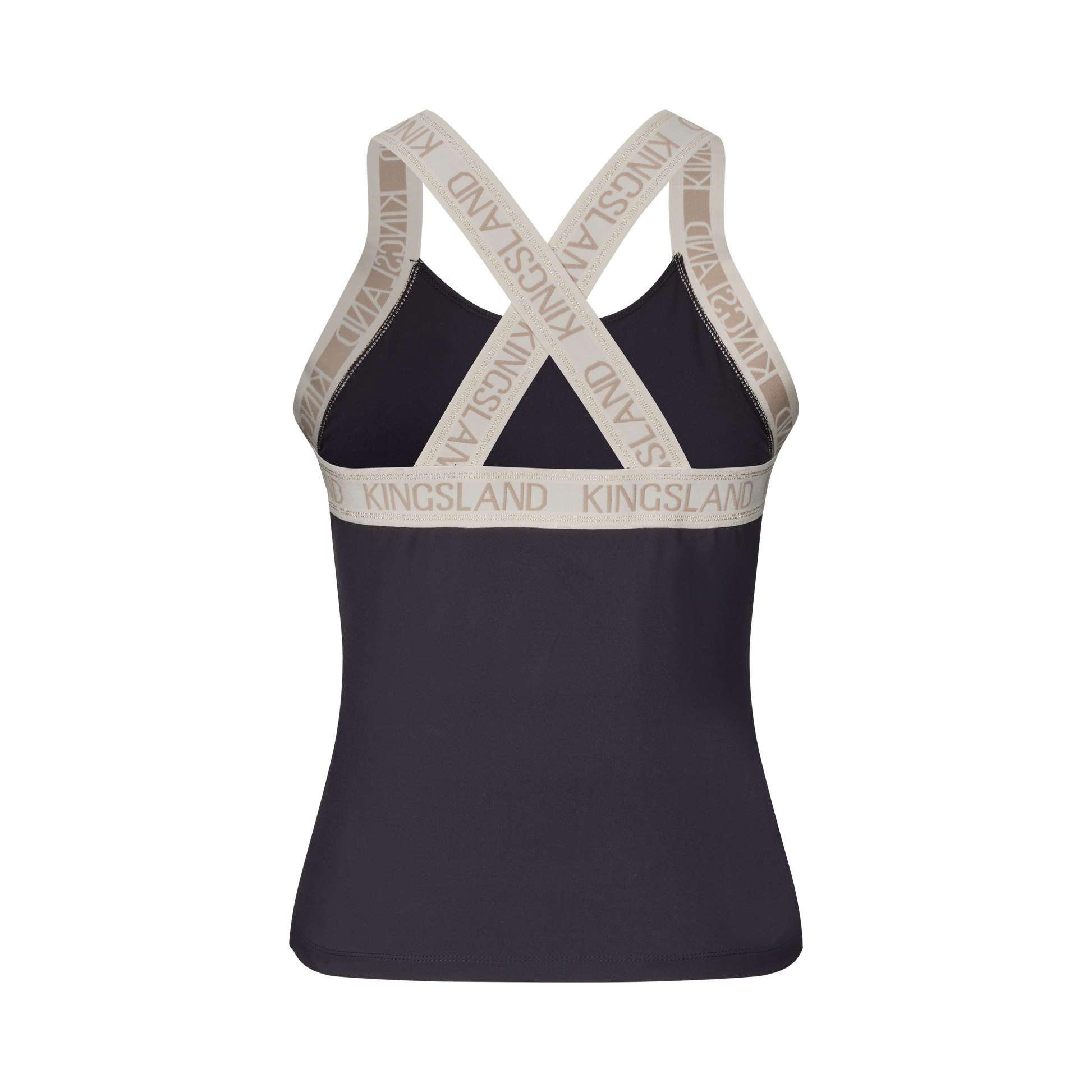 Een veelzijdige en ademende trainingstanktop, perfect als op zichzelf staande top of als basislaag onder je trainingsjack. De uitzonderlijke rekbaarheid en het comfort worden aangevuld met een Polygiene-behandeling met antibacteriële, geurwerende en sneldrogende eigenschappen, zodat je je fris en comfortabel voelt, hoe lang je ook in het zadel zit. Ontworpen met het Kingsland-logo en gouden details op de voorkant en bandjes, voegt het een stijlvol tintje toe aan je rijkleding.
