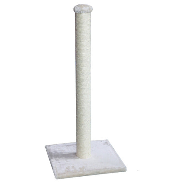 De diameter van de paal is 9 cm en volledig bekleed met sisaltouw, het plateau en de bovenkant zijn bekleed met pluche.