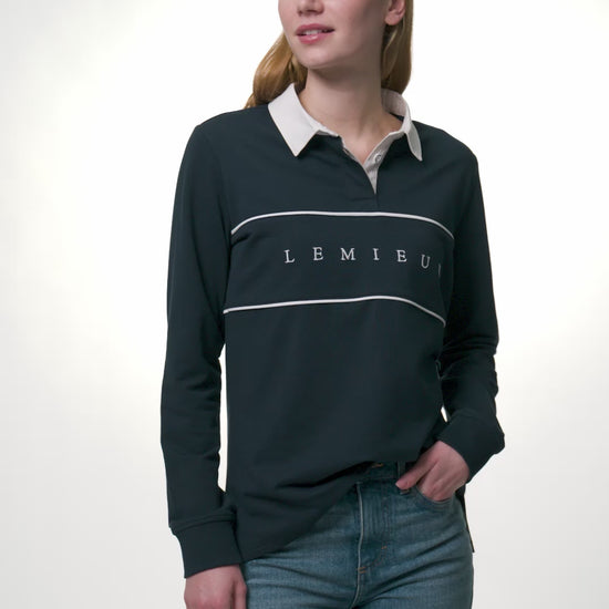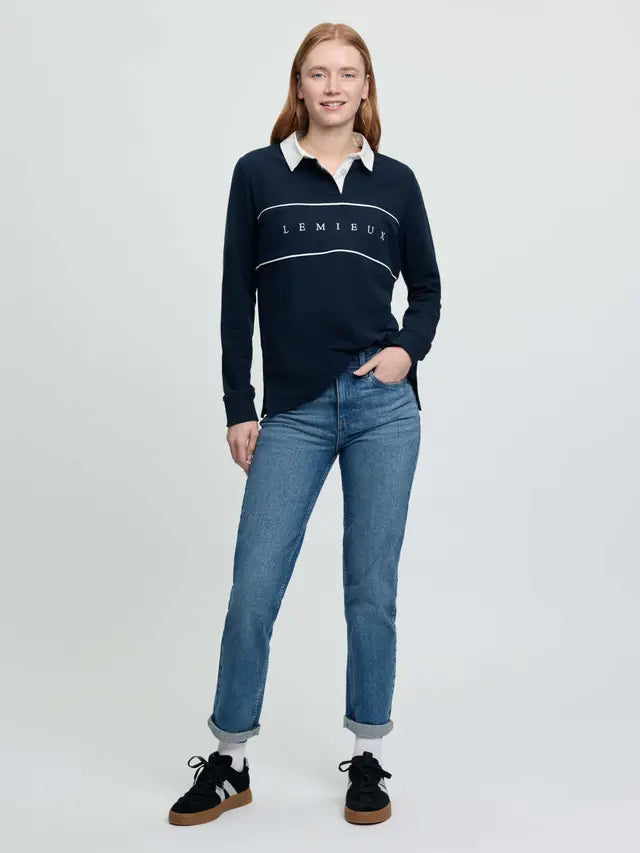 Rijd mee met de trend van het rugbyshirt met deze trendy versie van een Britse klassieker. De royale snit is gemaakt van heerlijk, zwaar, zacht loopbackmateriaal en geeft een boxy vorm die het lichaam mooi laat uitkomen.De katoenen kraag heeft witte knoopdetails met een LeMieux-merkaccent in bijpassende kleur, waardoor het een veelzijdige keuze is om gelaagd of afzonderlijk te dragen. Een klassieker voor elk seizoen. Kies een maat groter voor een meer oversized pasvorm.