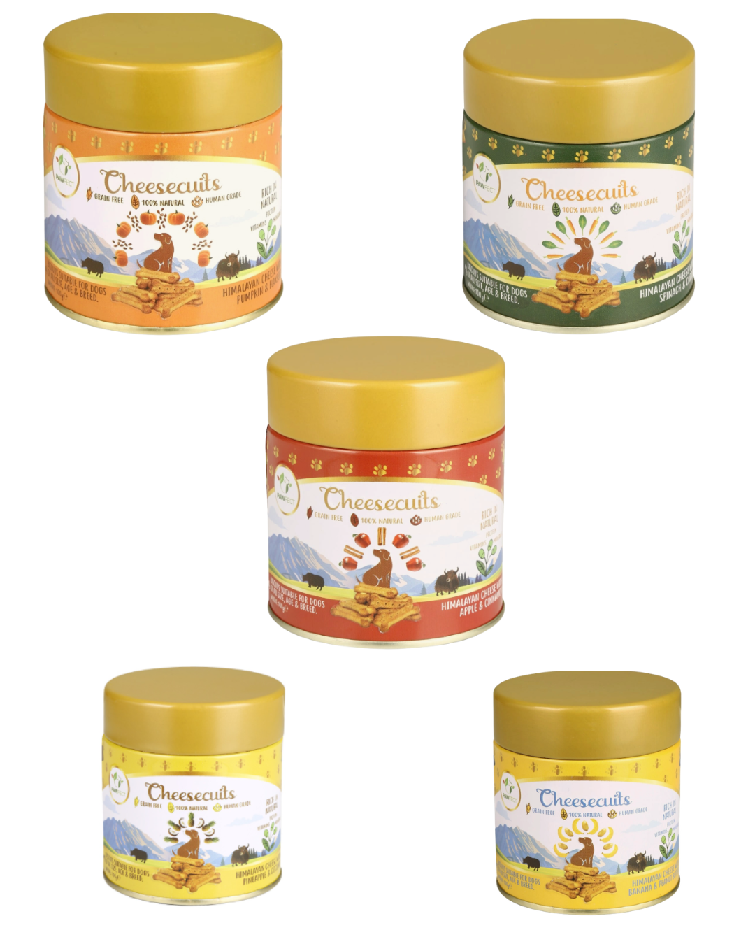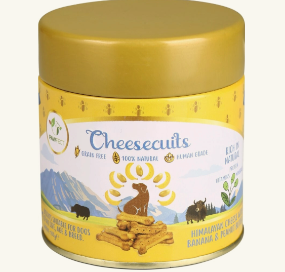 Pawfect Cheese Biscuits zijn heerlijke, voedzame hondenkoekjes gemaakt met minimaal 70% authentieke Himalaya kaas en verrijkt met fruit, groenten, kruiden, superfoods of notenboter. Vrij van granen, gluten en kunstmatige toevoegingen, zijn ze een gezonde traktatie voor honden van alle leeftijden.