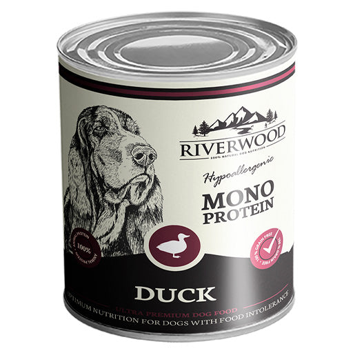 Natvoer voor honden gemaakt op basis van een enkele eiwitbron, in het bijzonder geschikt voor volwassen honden met een voedselintolerantie.