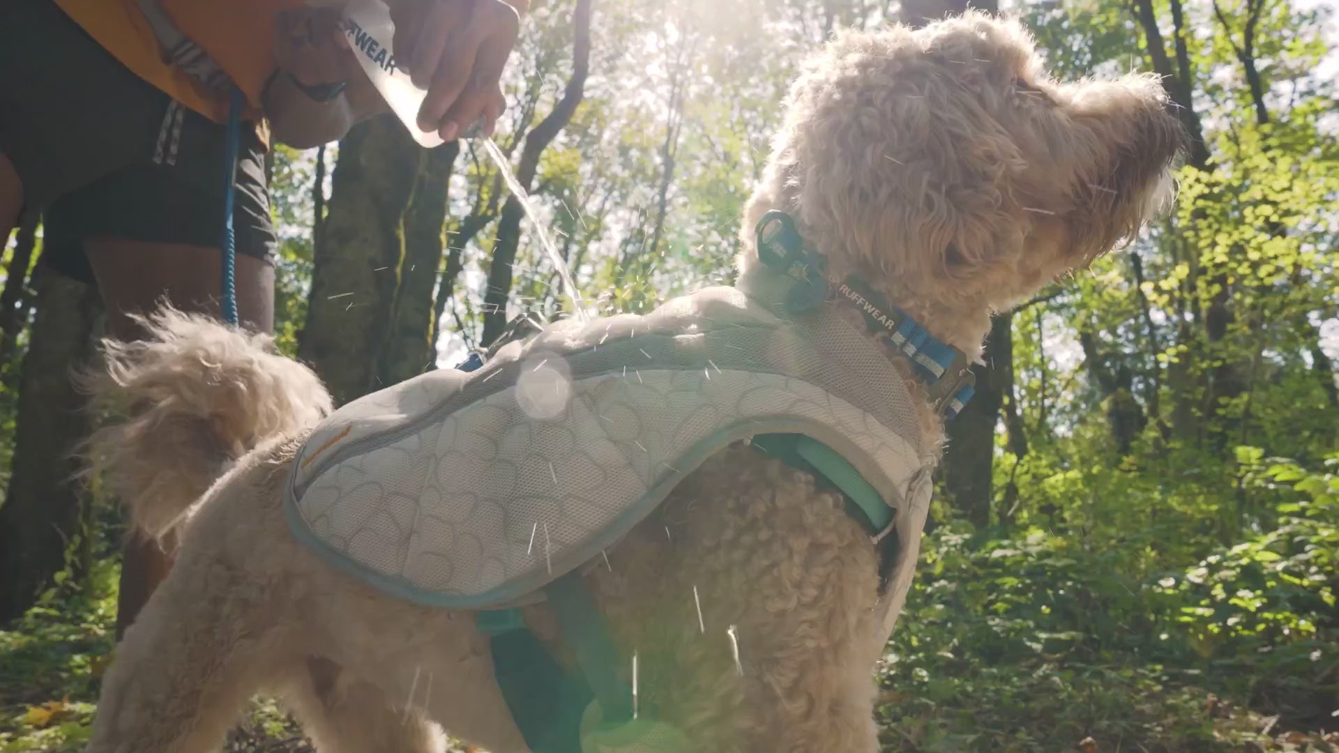 Dit multifunctionele lichaamsharnas integreert onze Swamp Cooler™ verdampingskoelingstechnologie op de hele rug en ondersteunend borst-/buikpaneel voor een alles-in-één koeloplossing terwijl honden op ontdekkingstocht gaan in warme omstandigheden. Inclusief een handvat en twee bevestigingspunten voor de riem.