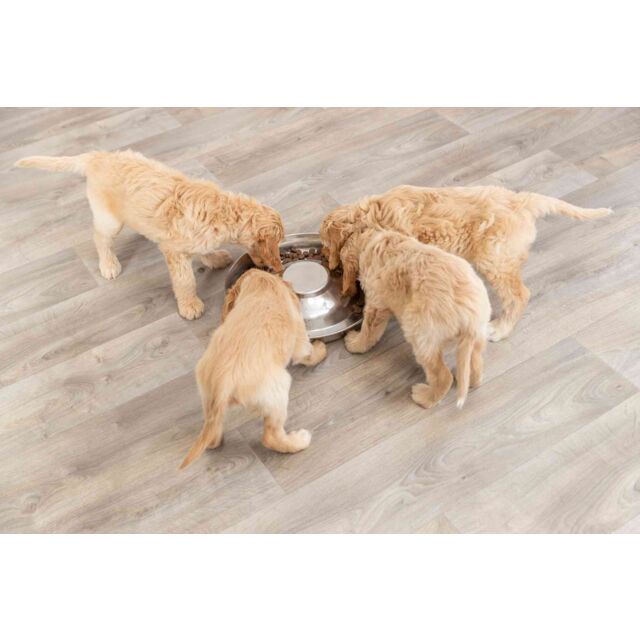 De Trixie Puppy Voerbak van roestvrij staal is speciaal ontworpen voor nestjes. Dankzij de slimme vormgeving kunnen meerdere puppy’s tegelijk comfortabel eten.